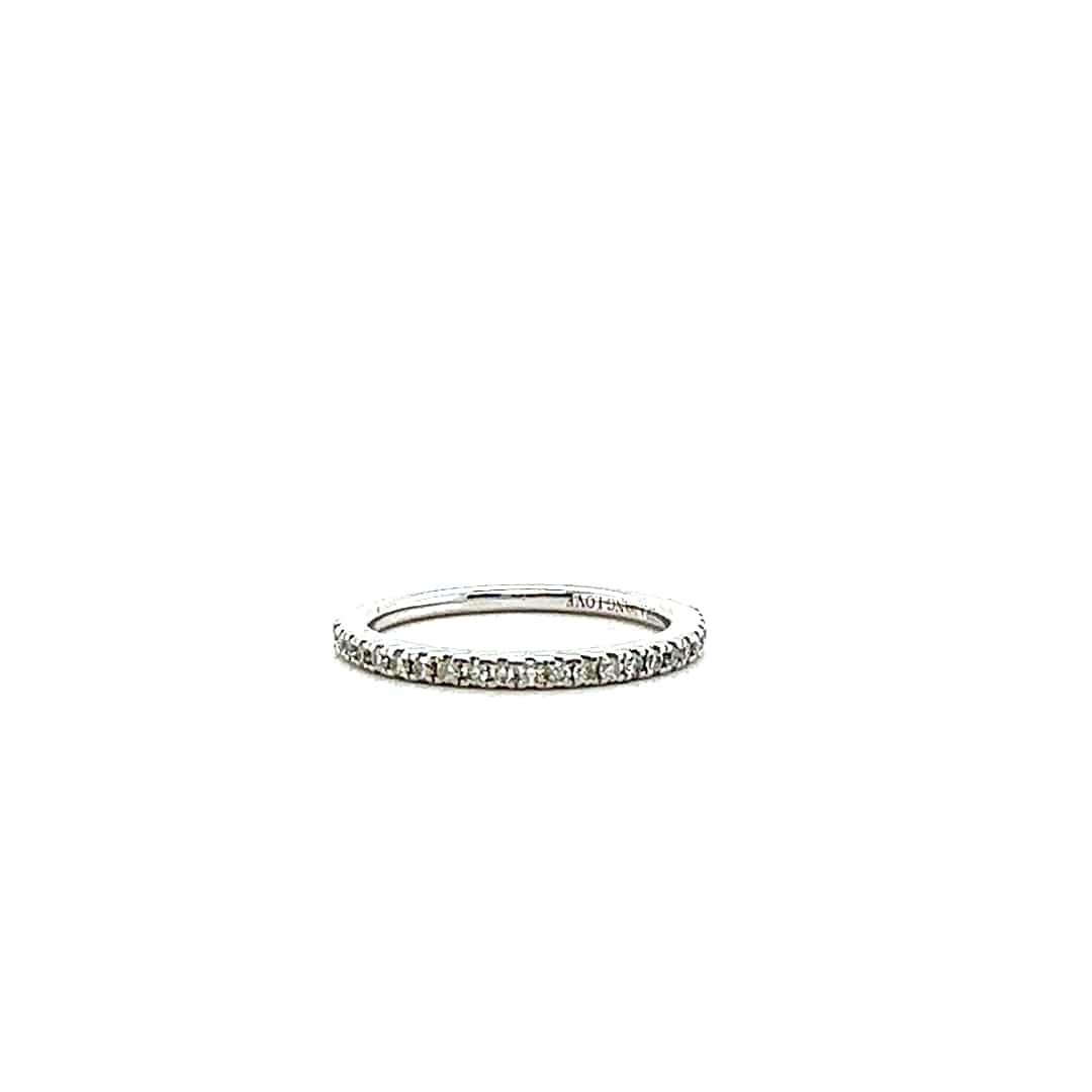 The wedding band sits nicely next to the engagement ring and is a half eternity style. Both rings are included in this set.