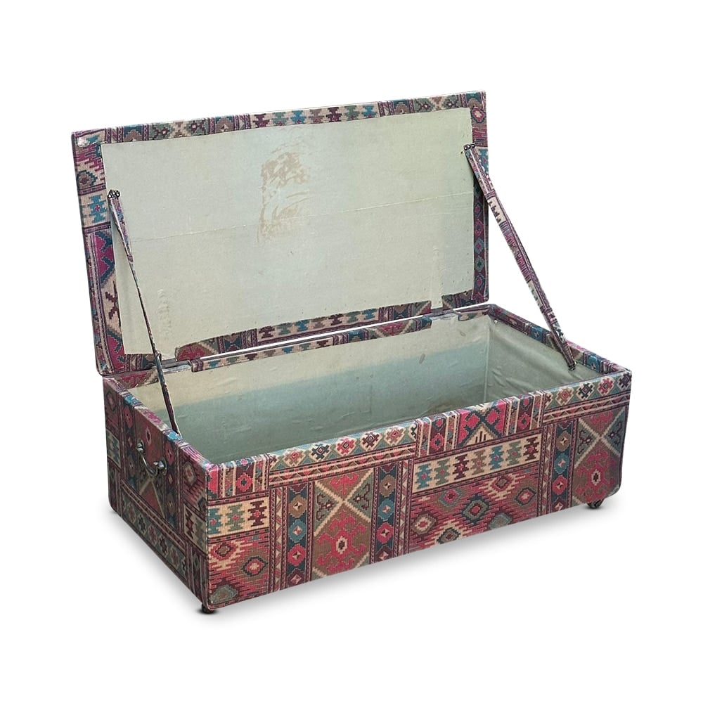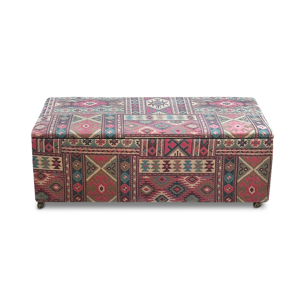 Crafted from a solid timber, the trunk is beautifully simple, synonymous with Georgian pieces. It has handles either side which are made from solid brass. This heavy, substantial piece has been upholstered in a tapestry like fabric.