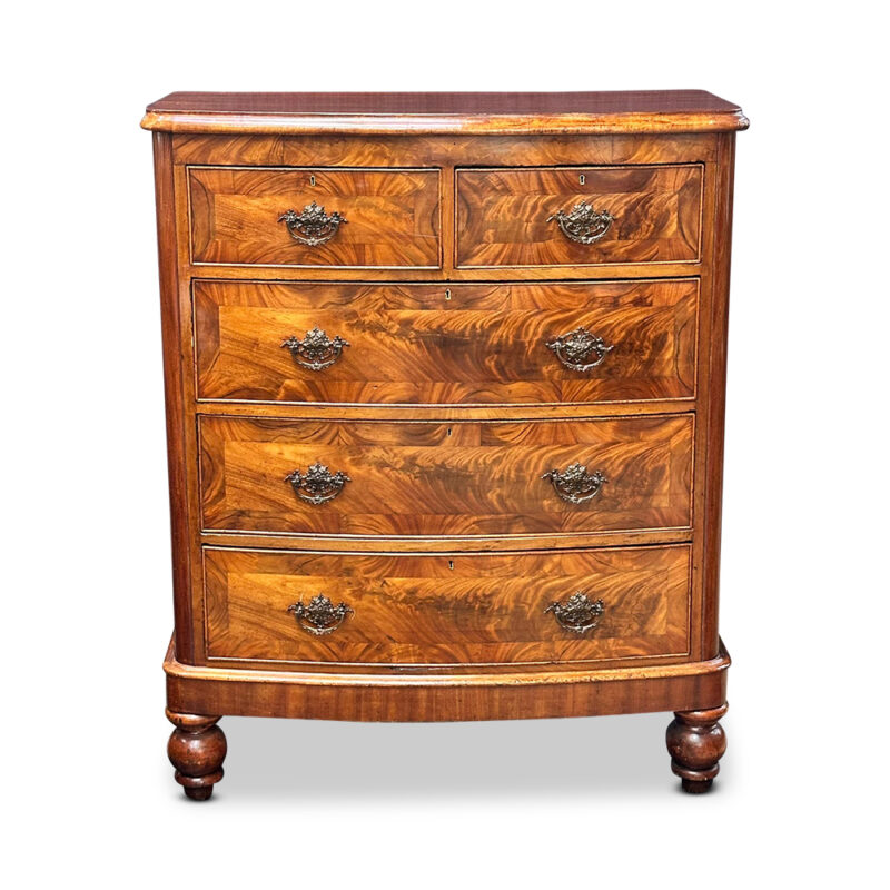 05/02/2026English mahogany 5 drawer bow fronted chest c.1870