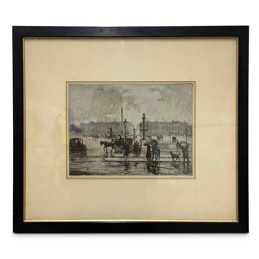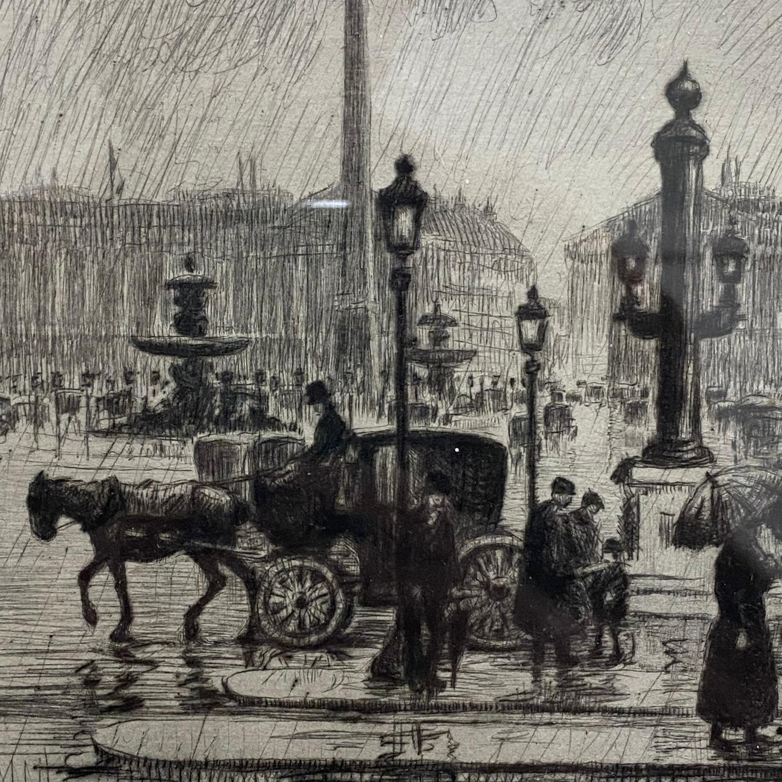 Ltd. Edition etching of La Pluie Place de la Concorde by Frank M. Armington.