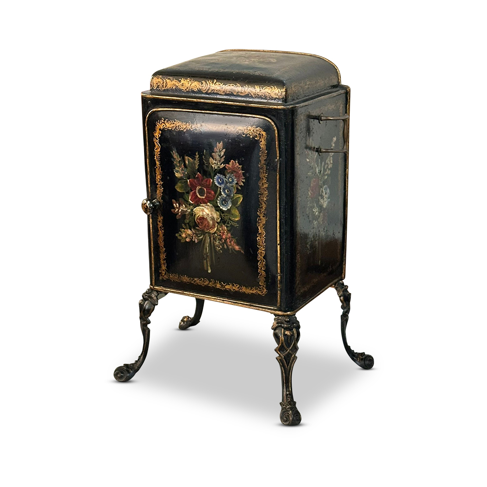 Surviving examples of Pontypool plate warmers are increasingly scarce, particularly those retaining such strong painted decoration and refined proportions. This piece offers a wonderful blend of utility, folk art charm, and refined English design, and would display beautifully in both traditional and eclectic interiors.