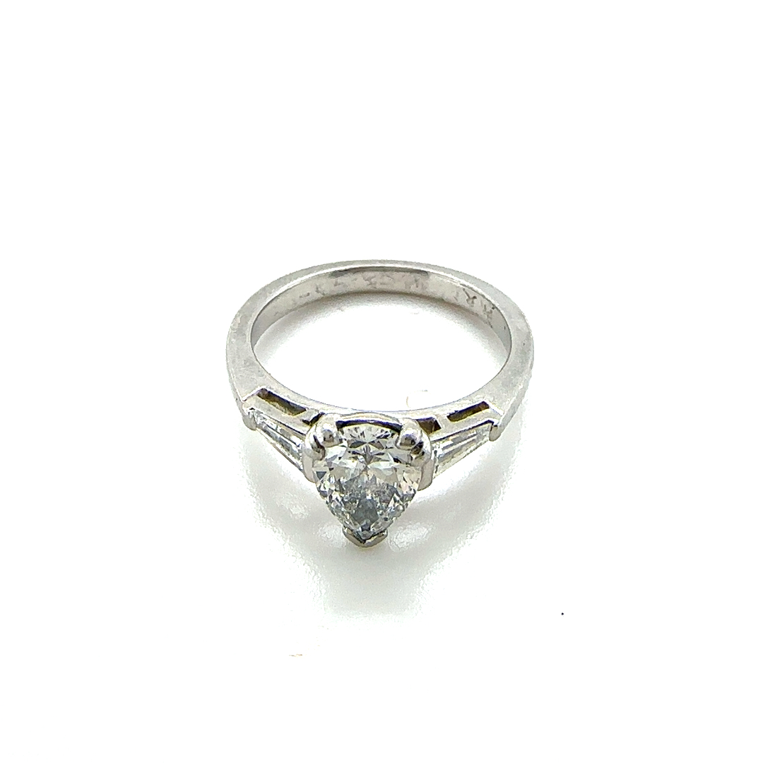 12/09/2025Platinum pear cut diamond solitaire ring with baguettes