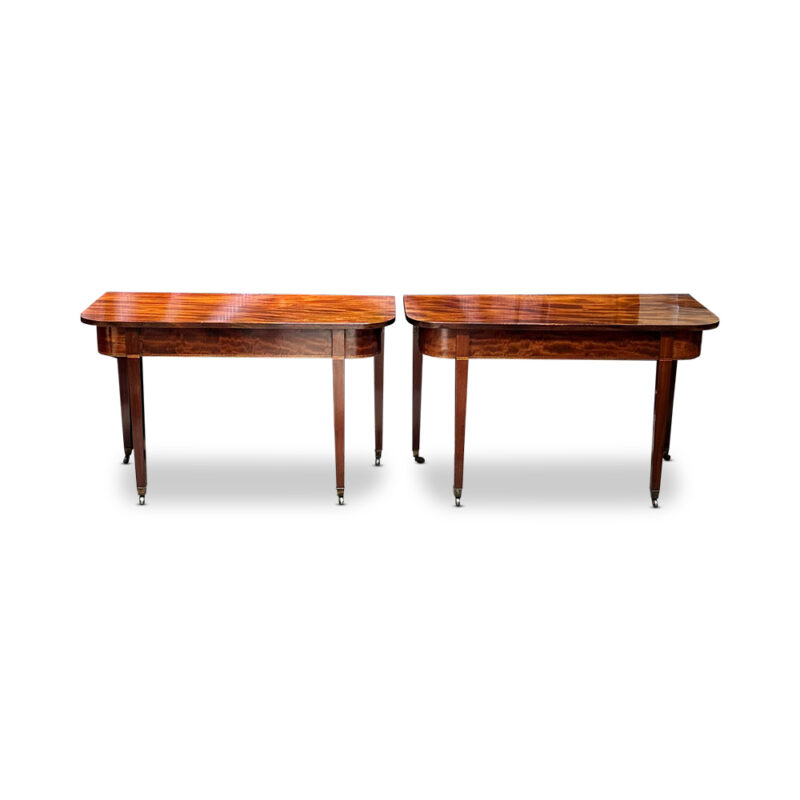 23/01/2026Pr Georgian mahogany console tables with tunbridgeware banding c.1800